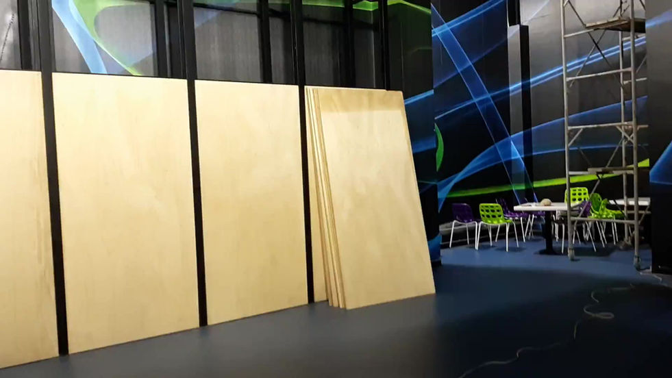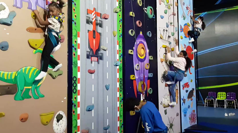 تم بناء الجدار بهيكل من الحديد المجلفن مثبت على قواعد ذاتية الدعم مثبتة في الأرض ومغطاة بخشب رقائقي خاص مصنوع لأغراض التسلق.